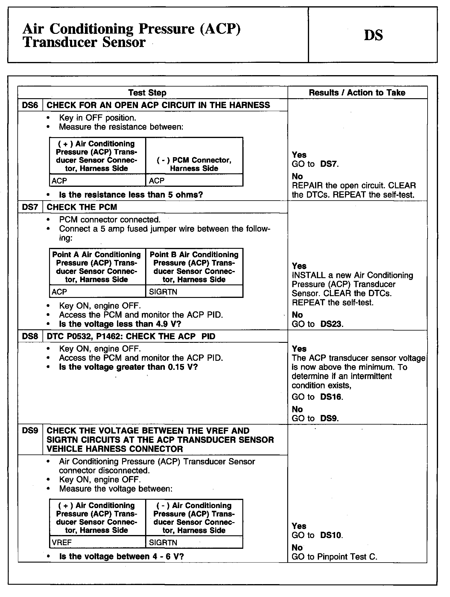Tests DS: Air Conditioning Pressure (ACP) Transducer Sensor
