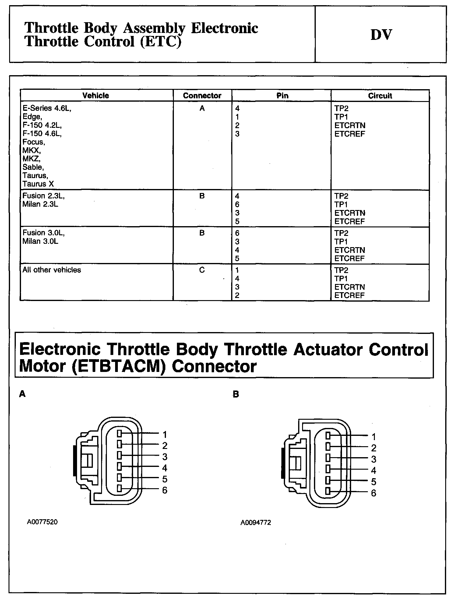Electronic Throttle Body Throttle Position Sensor (ETBTPS) Connector And Electronic Throttle Body Throttle Actuator Control Motor (ETBTACM) Connector: