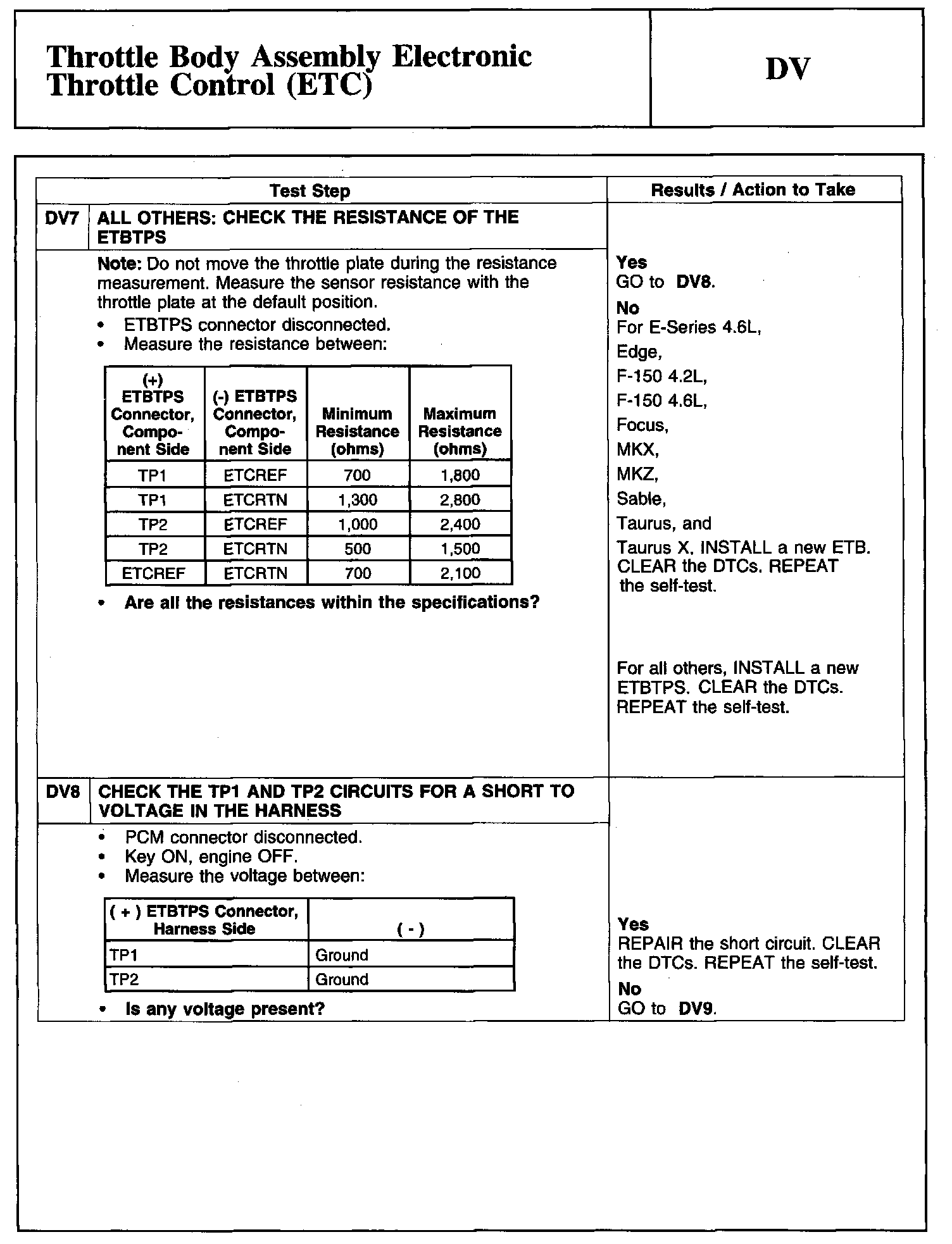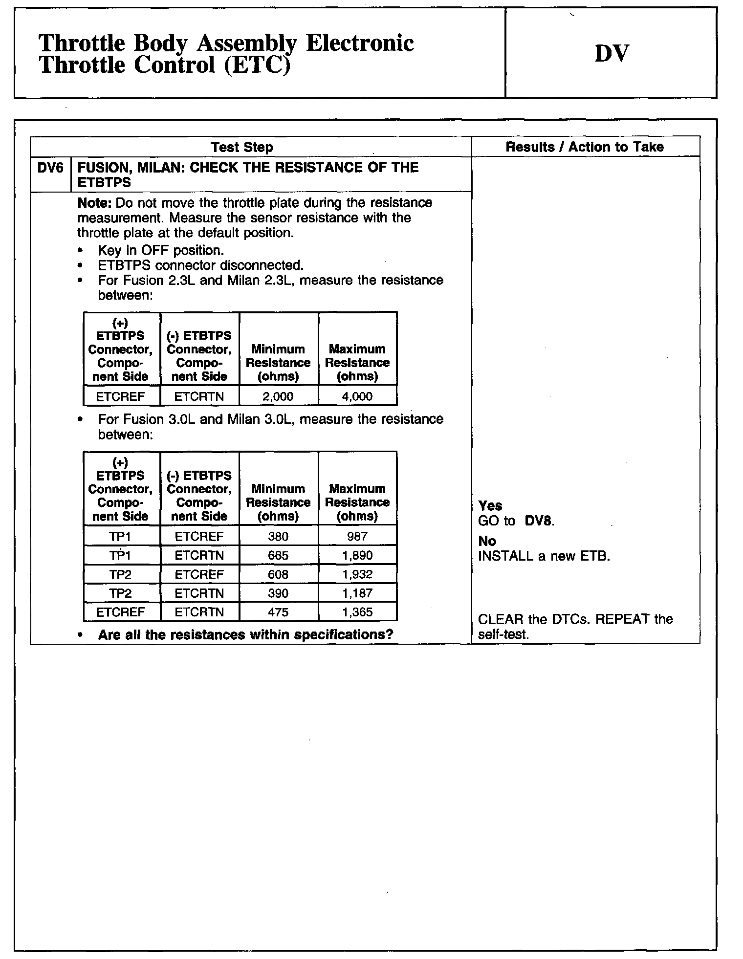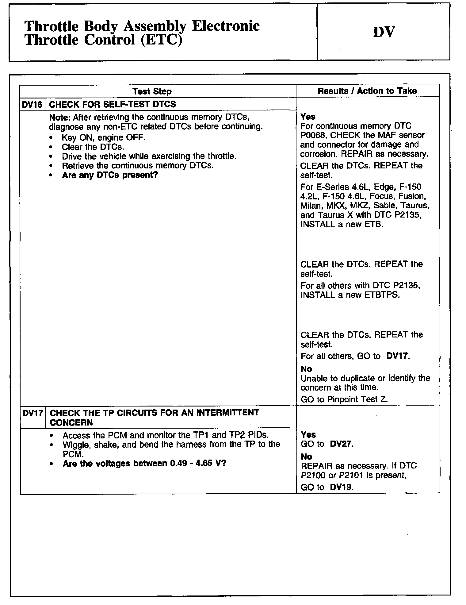 Tests DV: Throttle Body Assembly Electronic Throttle Control (ETC)