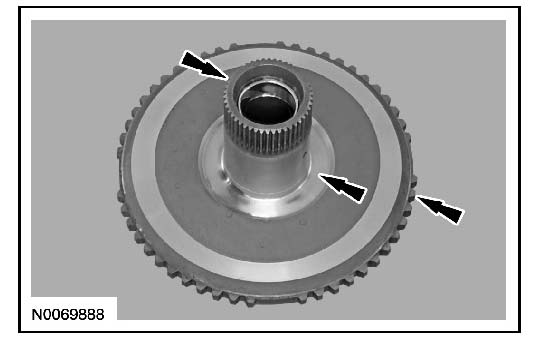 7. Clean and inspect the front planetary carrier hub for damage or wear and install new, if necessary.