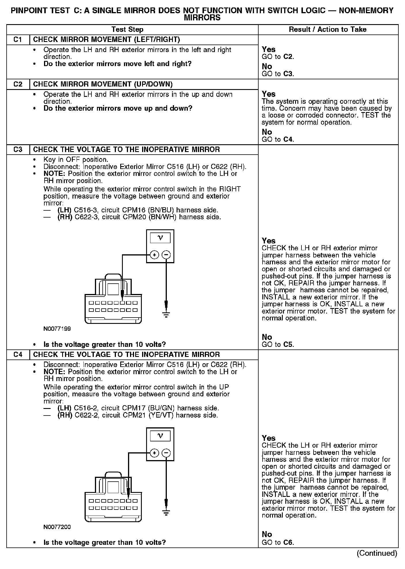 PINPOINT TEST C: A SINGLE MIRROR DOES NOT FUNCTION WITH SWITCH LOGIC - NON-MEMORY MIRRORSNormal Operation