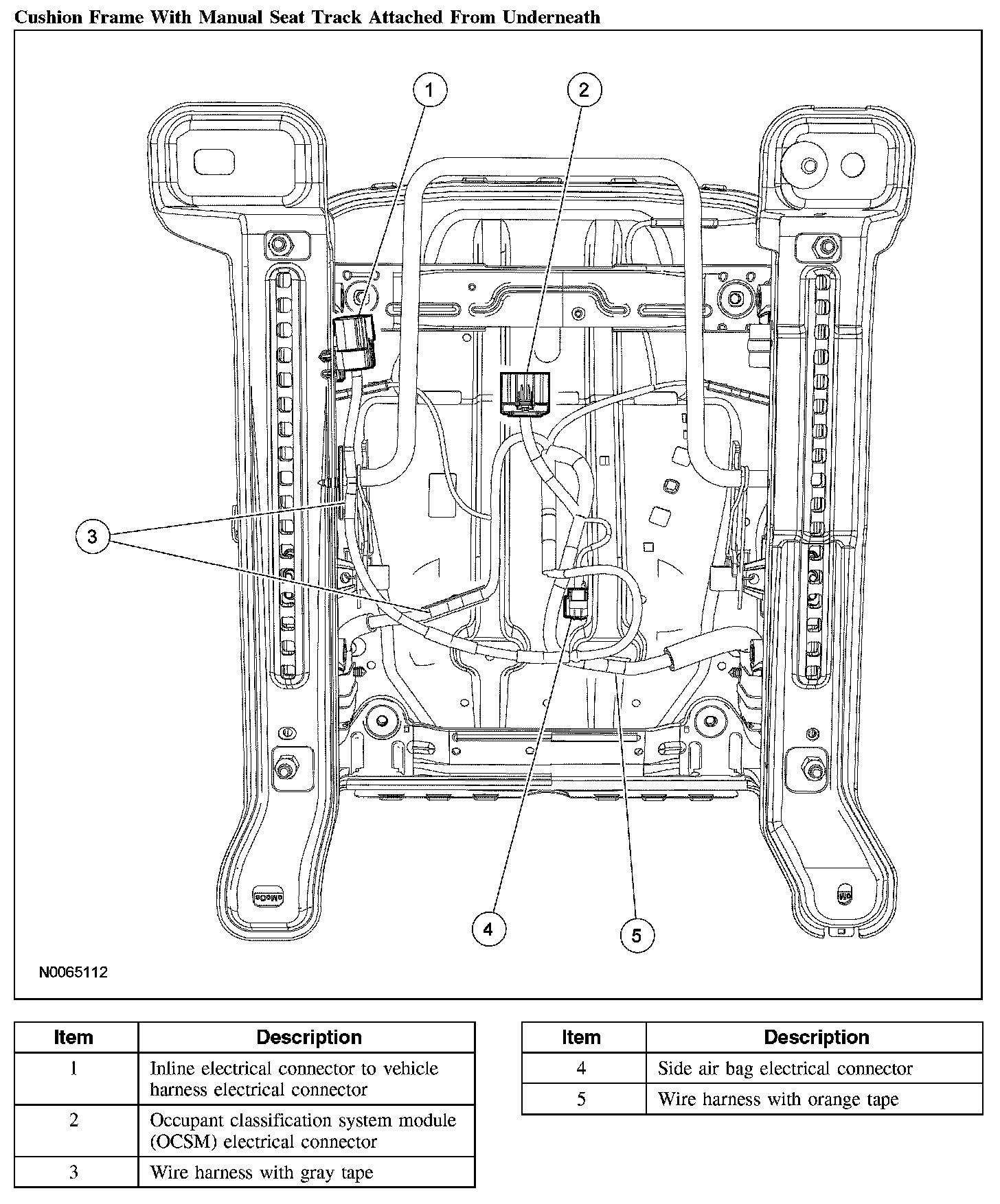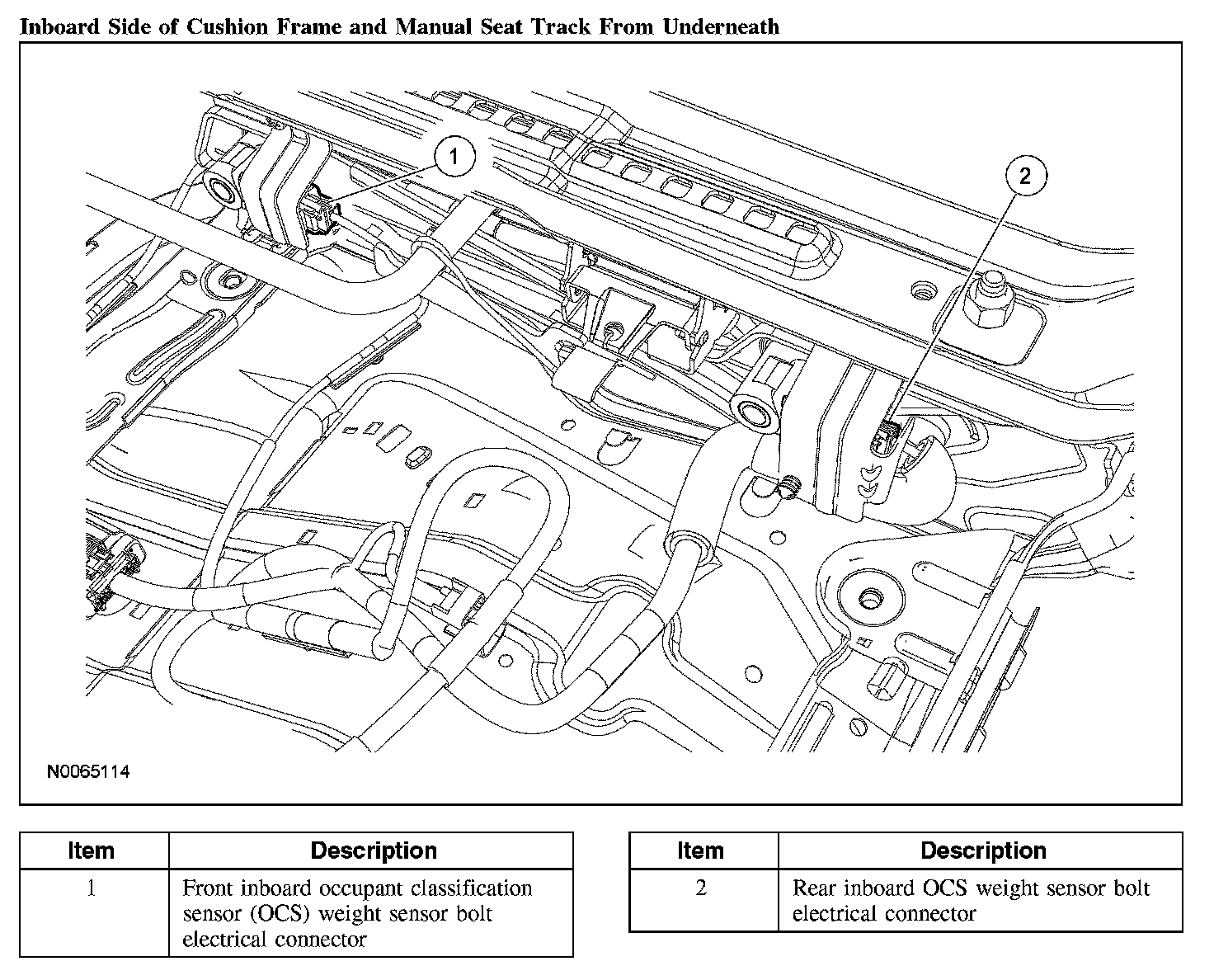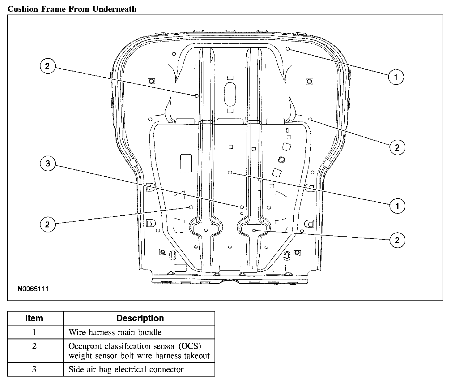 1. Make sure the passenger seat cushion wire harness is correctly routed and attached.