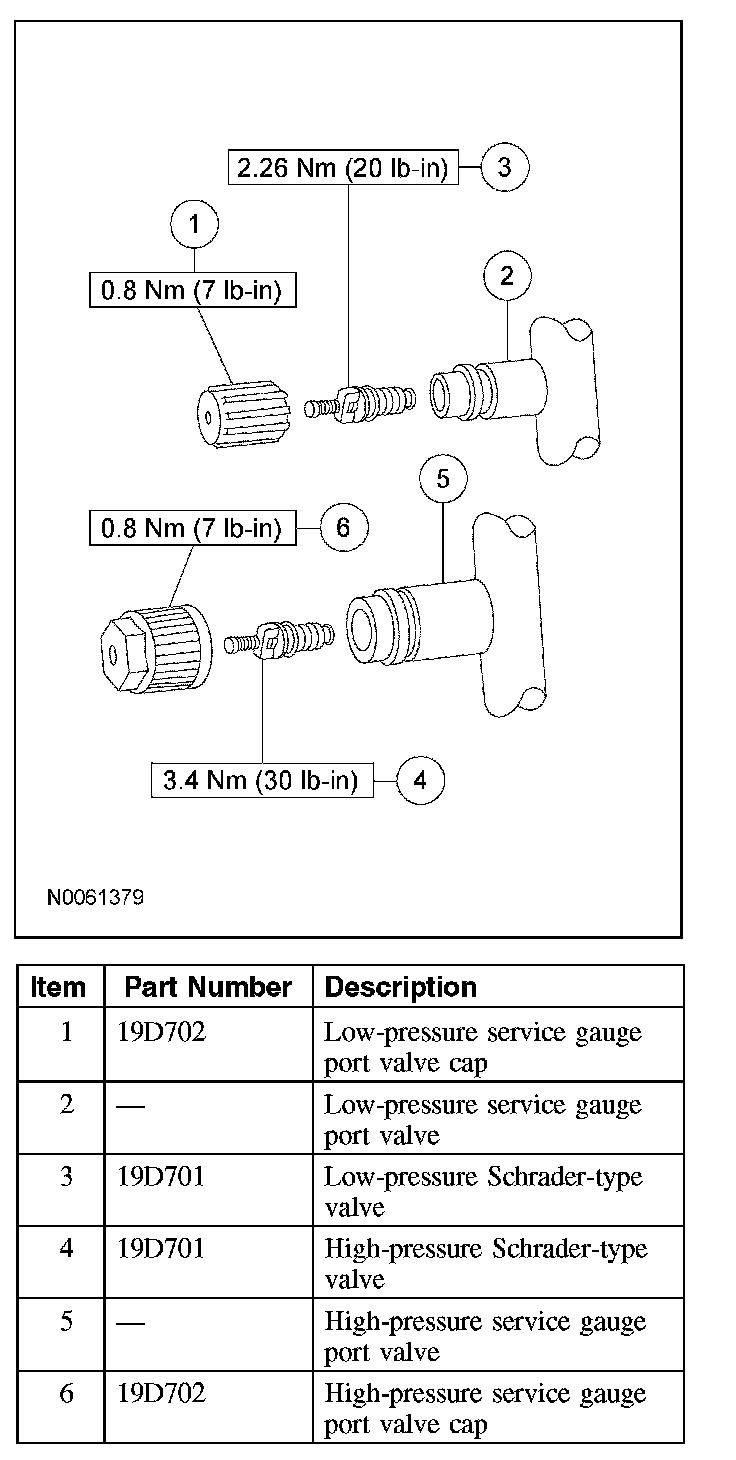 - The service gauge port valve caps are used as primary seals in the refrigerant system to prevent leakage through the Schrader-type valves from reaching the atmosphere. Always install and tighten the A/C service gauge port valve caps to the correct torque after they are removed.