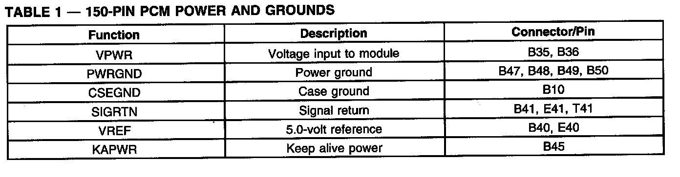 150-Pin PCM Power And Grounds: