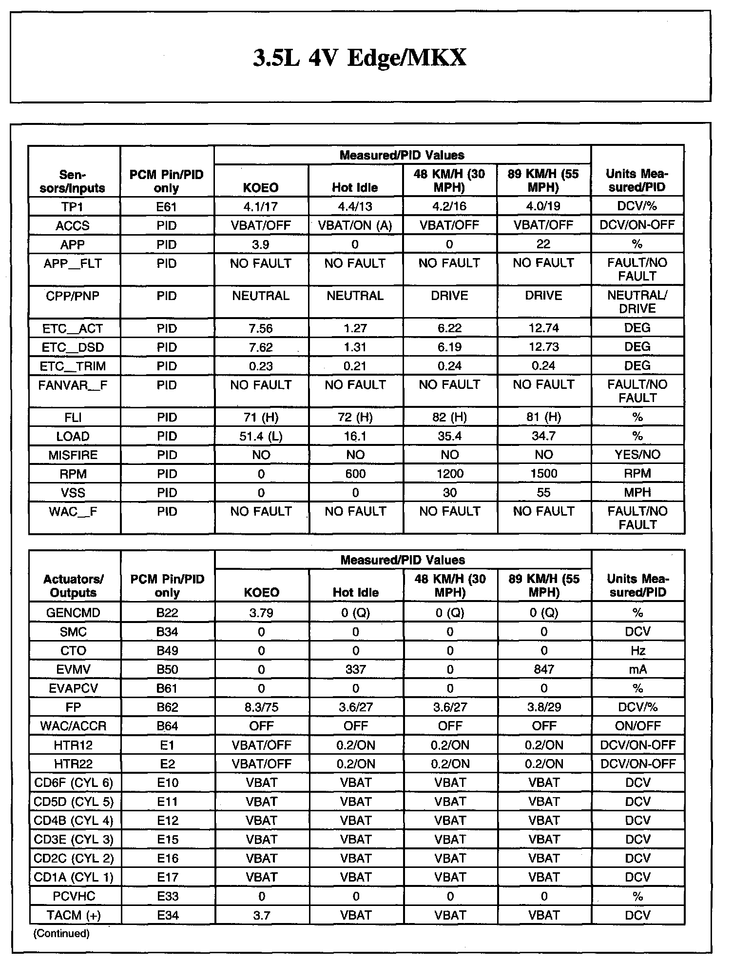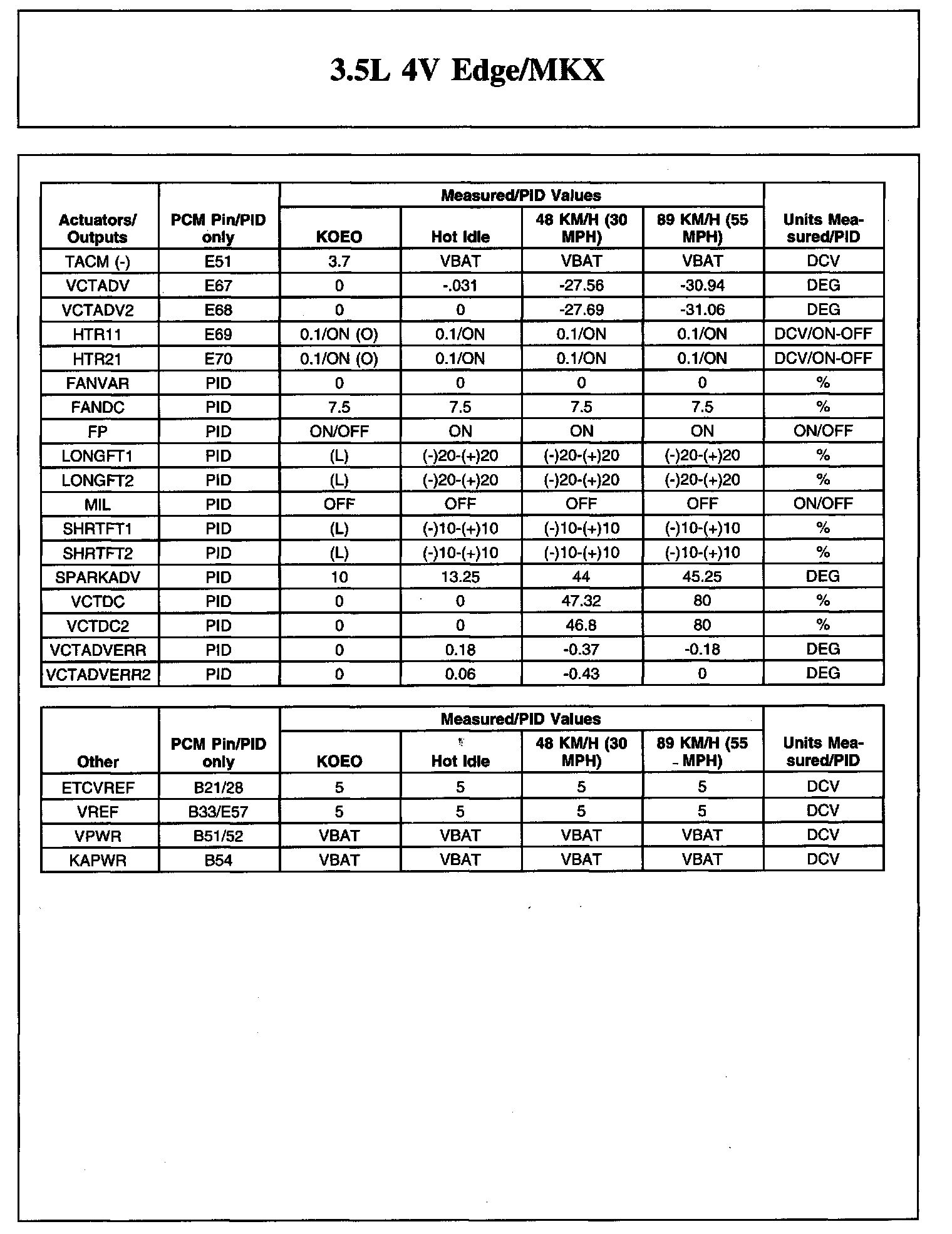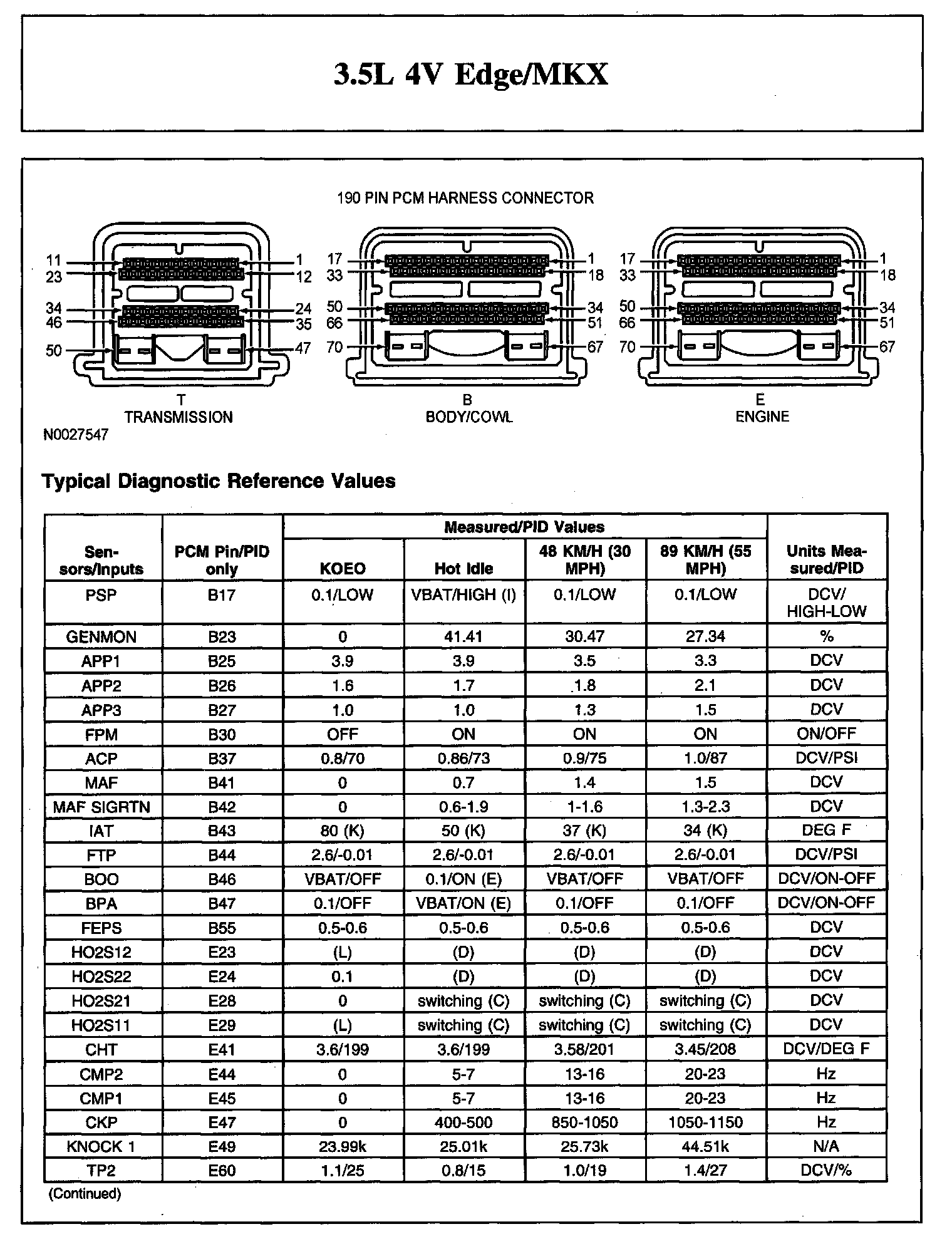 TYPICAL DIAGNOSTIC REFERENCE VALUES3.5L 4V Edge/MKX (Part 1):