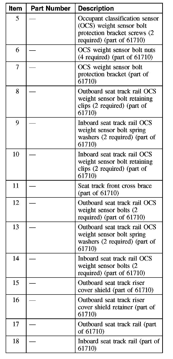 OCCUPANT CLASSIFICATION SENSOR - POWER SEAT TRACKPart 1: