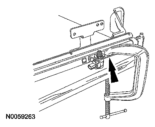 9. CAUTION: Do not overtighten the side plate with the occupant classification sensor (OCS) weight sensor bolts to the bench or table. Tighten only enough to compress the spring washer. Overtightening may damage the side plate or OCS weight sensor bolts.