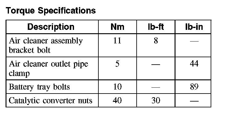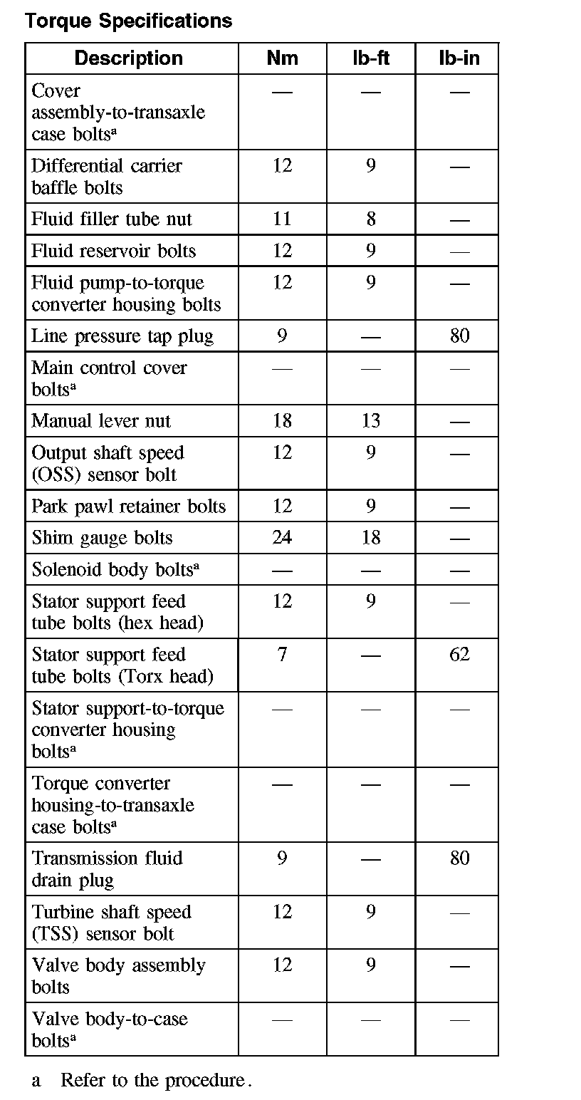 Torque Specifications (Part 1):