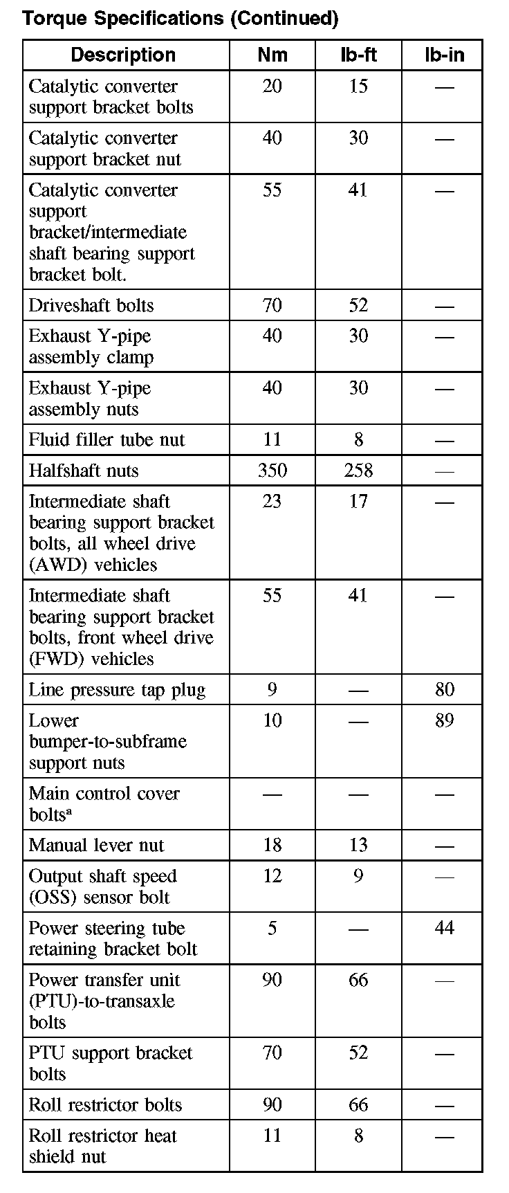 Torque Specifications (Part 2):