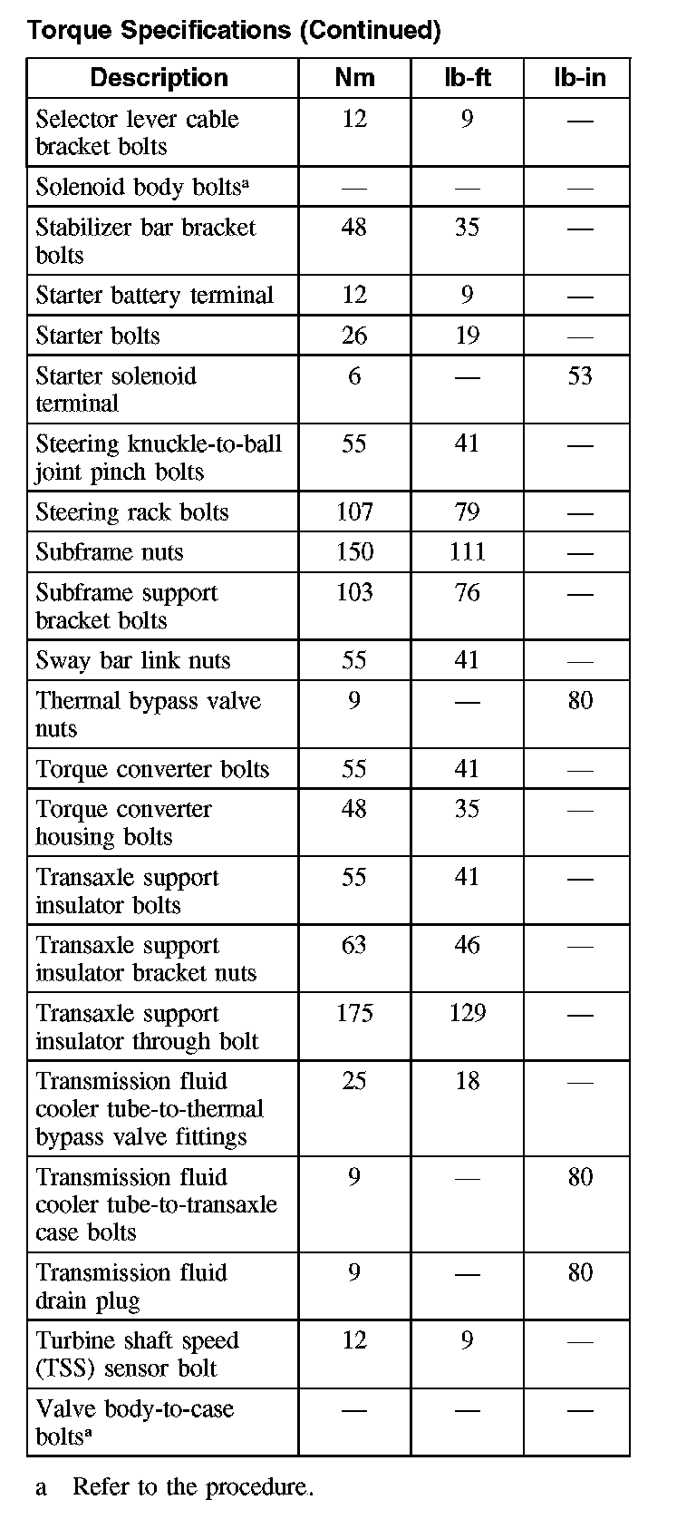 Torque Specifications (Part 3):