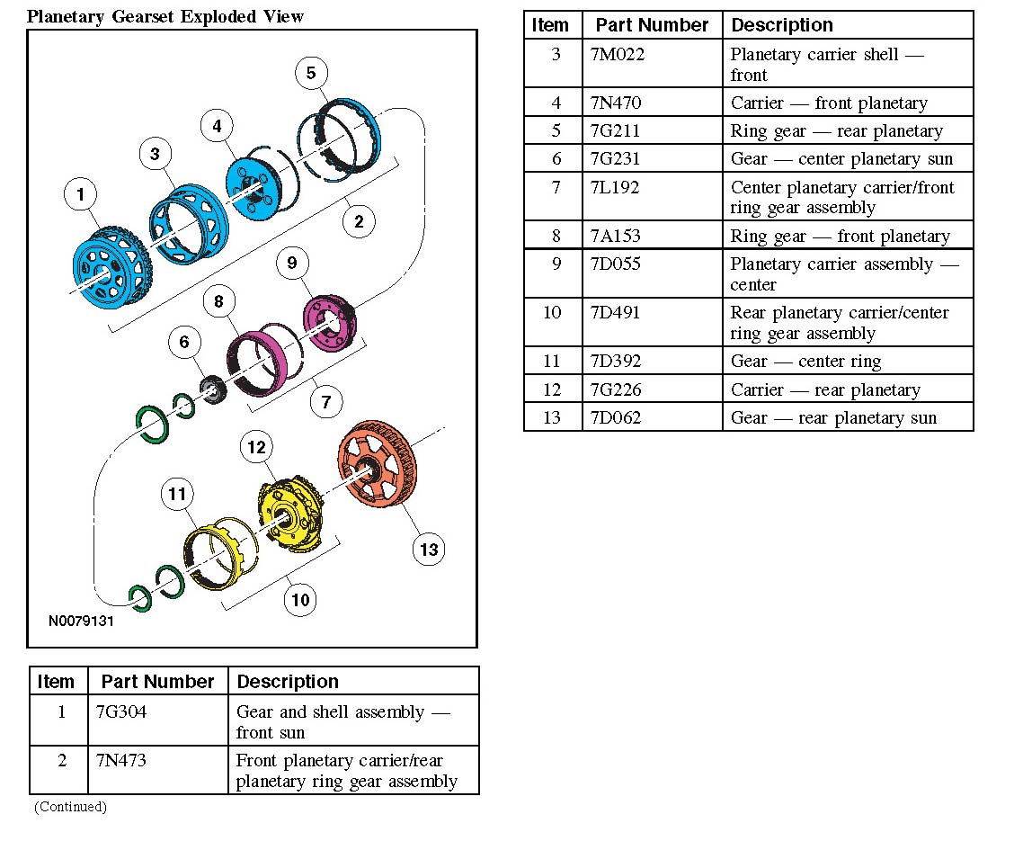 The center planetary ring gear is splined to the rear planetary carrier and transfers power from the center planetary gearset to the rear planetary gearset in 3rd gear, from the rear planetary gearset to the center planetary gearset in 4th gear and is held stationary by the low one-way clutch and low/reverse clutch in 1st gear and reverse.