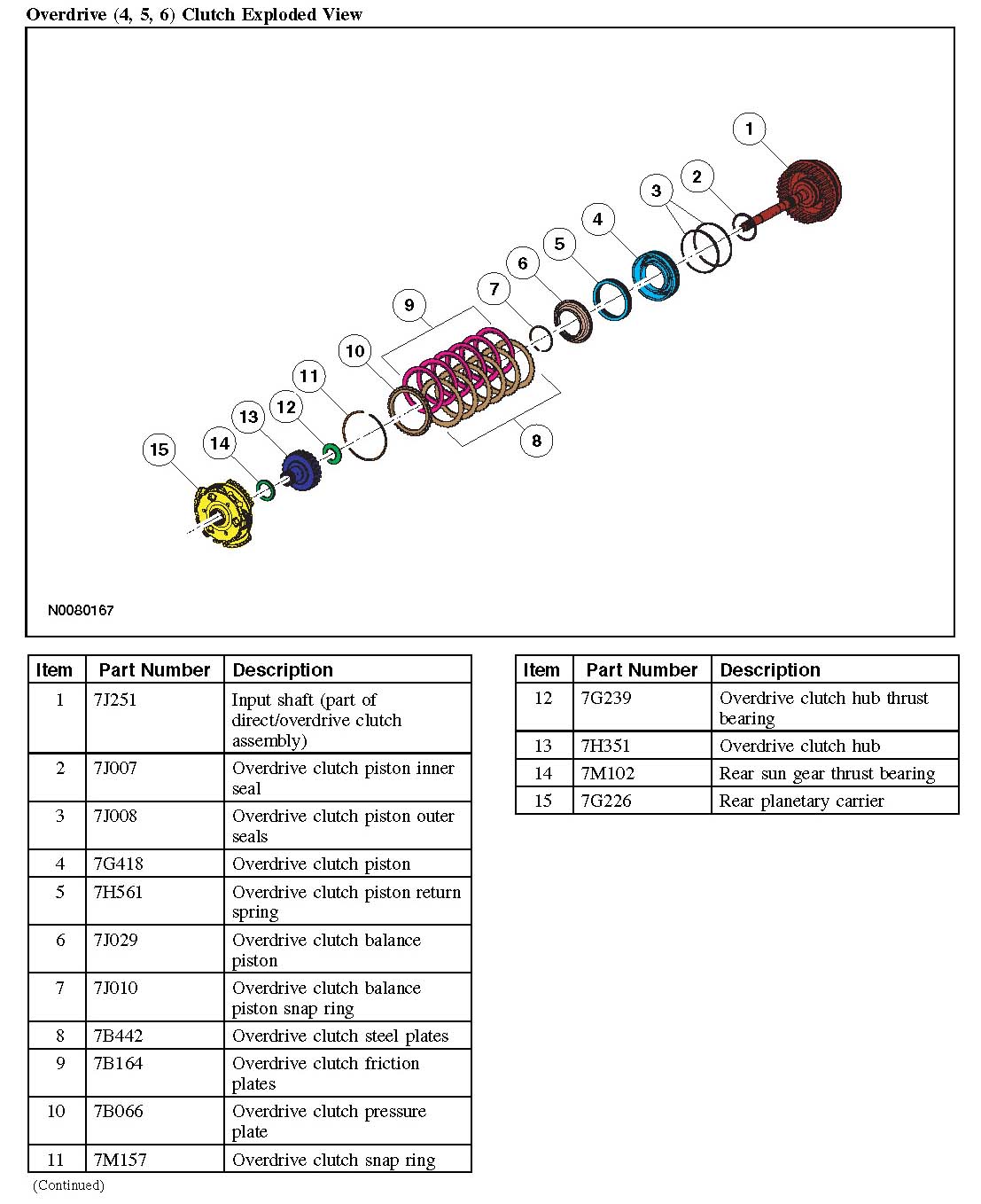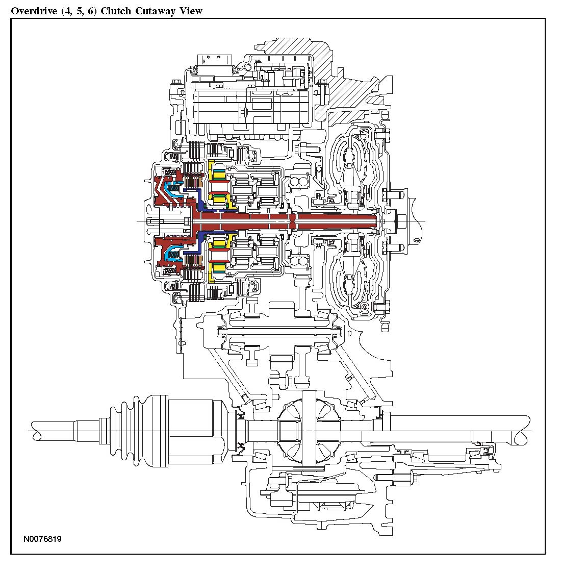 The overdrive clutch is a drive clutch that transfers power from the direct/overdrive hub and shaft assembly to the rear planetary carrier. The overdrive clutch is applied in 4th, 5th and 6th gear.