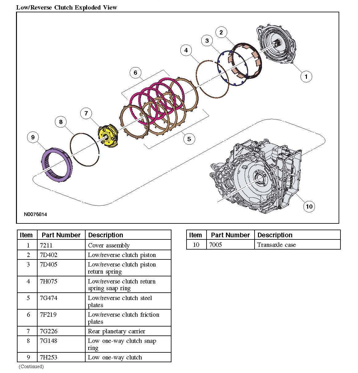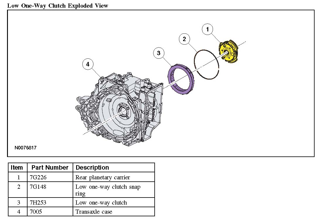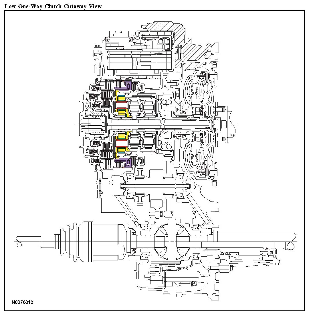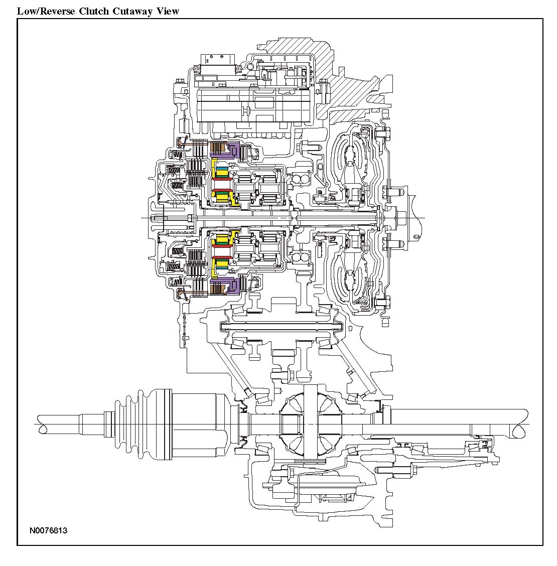 The low/reverse clutch is a brake clutch that holds the low one-way clutch which is splined to the rear planetary carrier. The low/reverse clutch is applied in manual LOW, reverse and 1st gear up to 5 km/h (3 mph).