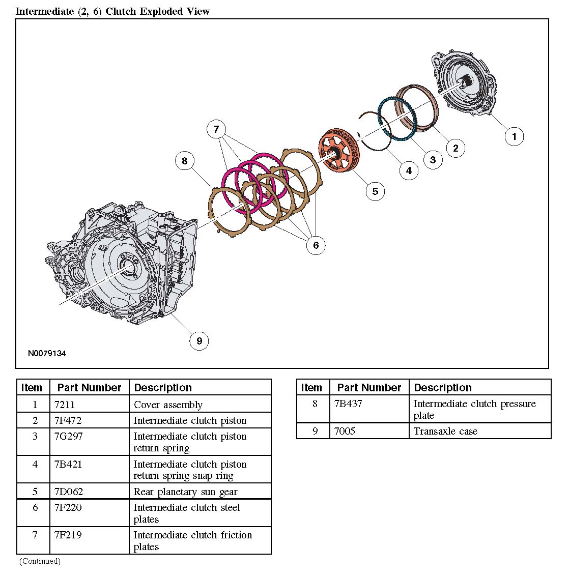 The intermediate clutch is a brake clutch that holds the rear sun and shell assembly. The intermediate clutch is applied in 2nd and 6th gear.