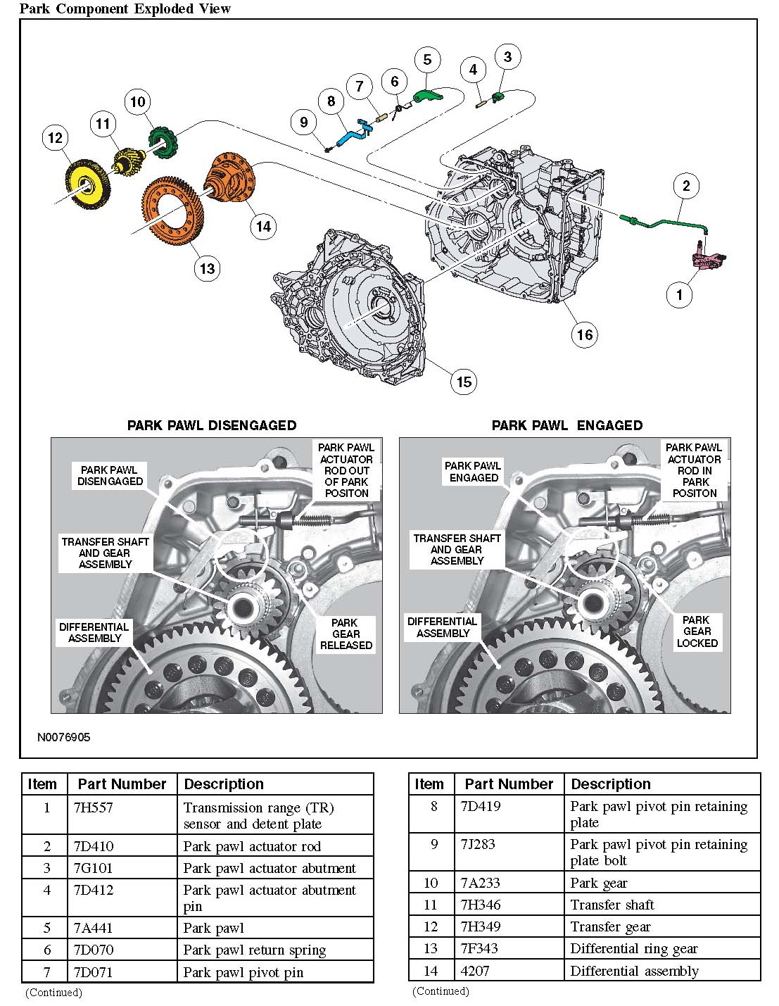 ^ The transmission range (TR) sensor rotates the range detent plate which pushes the park pawl actuator rod towards the park pawl.