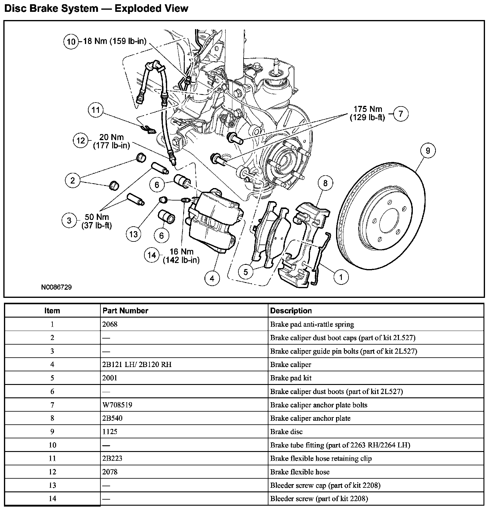 Disc Brake System - Exploded View: