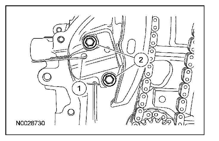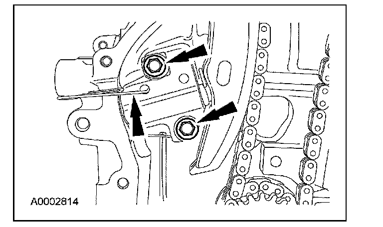 2. Remove the bolts and timing chain tensioner.
