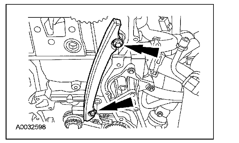 6. Remove the bolts and the LH timing chain guide.