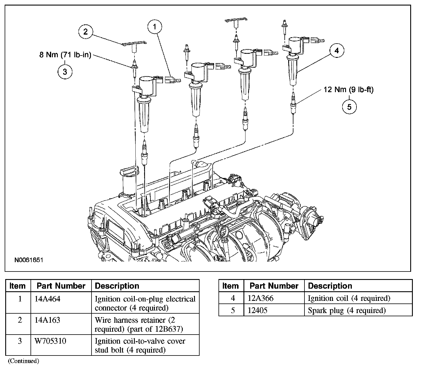 Install the 4 ignition coils and stud bolts.