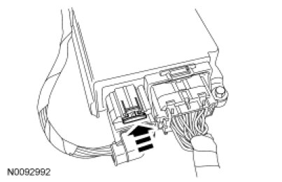 - NOTICE: Do not push the connector to the point where the lever pivots and seats itself. Light pressure is needed to get the connector into position on the Restraints Control Module (RCM) before using the lever to fully seat the connector. Failure to follow these instructions may result in component damage and/or system failure.