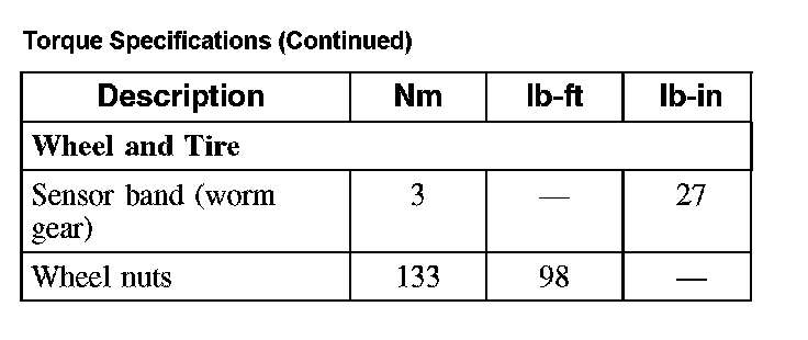 Torque Specifications (Part 1):