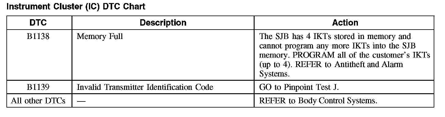 Instrument Cluster (IC) DTC Chart