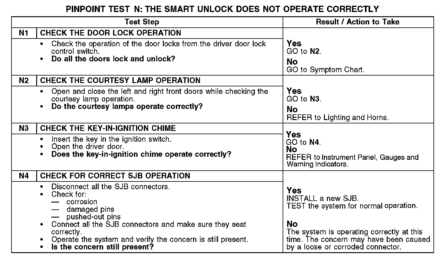 PINPOINT TEST N: THE SMART UNLOCK DOES NOT OPERATE CORRECTLYNormal Operation