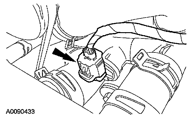 6. Detach the wiring retainer, remove the nut and the heated oxygen sensor (HO2S) electrical connector bracket.
