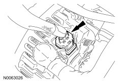 ^ Detach the wiring harness retainer.