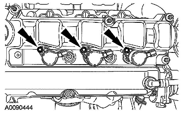 Remove the bolts and the 6 coil-on-plugs.