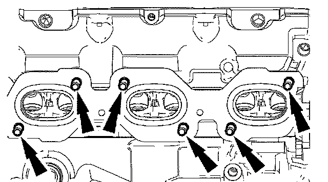29. Remove and discard the 6 RH exhaust manifold studs.