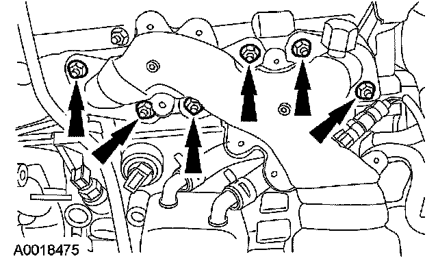 28. Remove the 6 nuts, the RH exhaust manifold and the gasket.