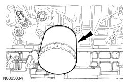 CAUTION: During engine repair procedures, cleanliness is extremely important. Any foreign material, including any material created while cleaning gasket surfaces that enters the oil passages, coolant passages or the oil pan, can cause engine failure.