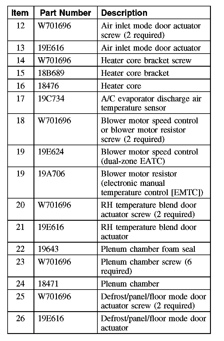 18. Remove the 2 LH temperature blend door actuator screws (if equipped).