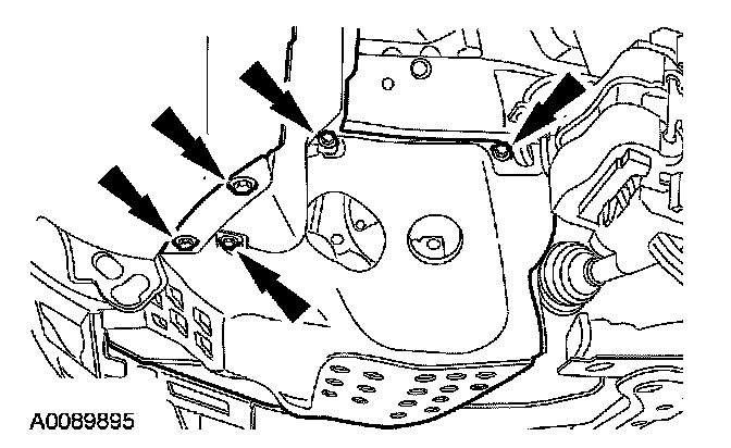 2. Remove the 7 bolts (5 shown) and the LH splash shield.