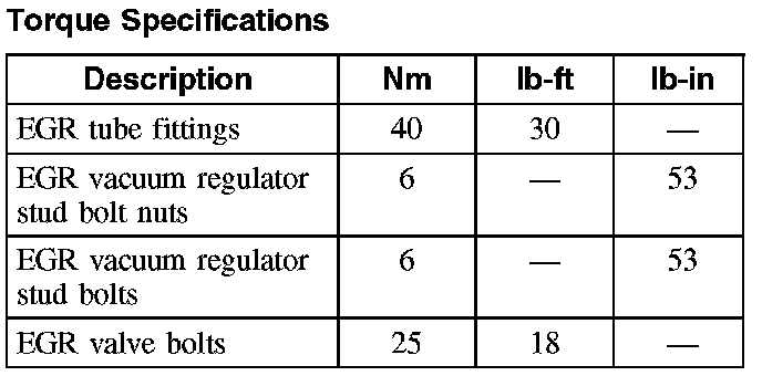 Torque Specifications: