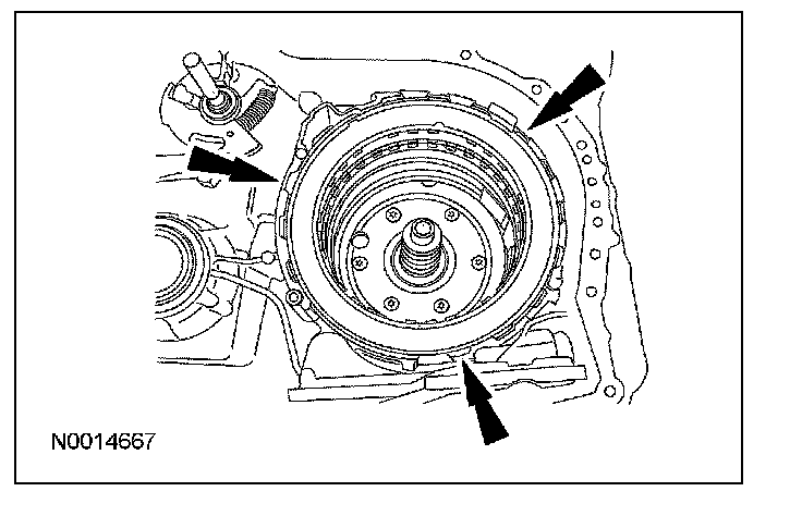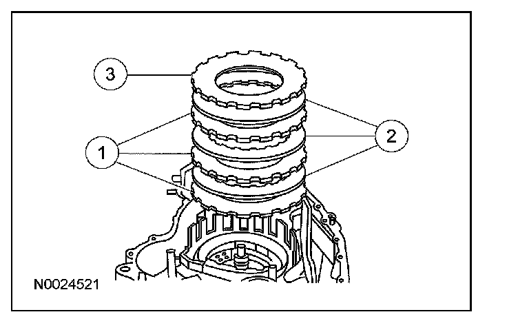 1 Install the low/reverse clutch external spline (steel) clutch plates.