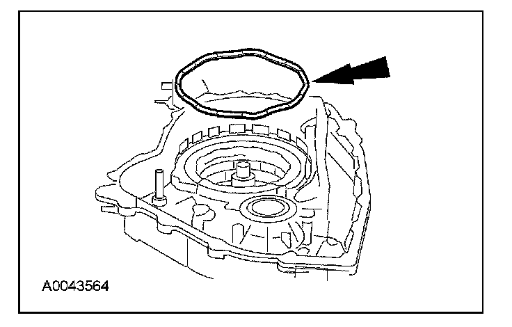 47. Use petroleum jelly and install the selected No. 10 drive sprocket thrust washer on the torque converter housing.