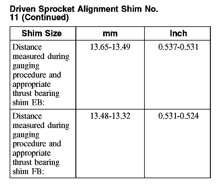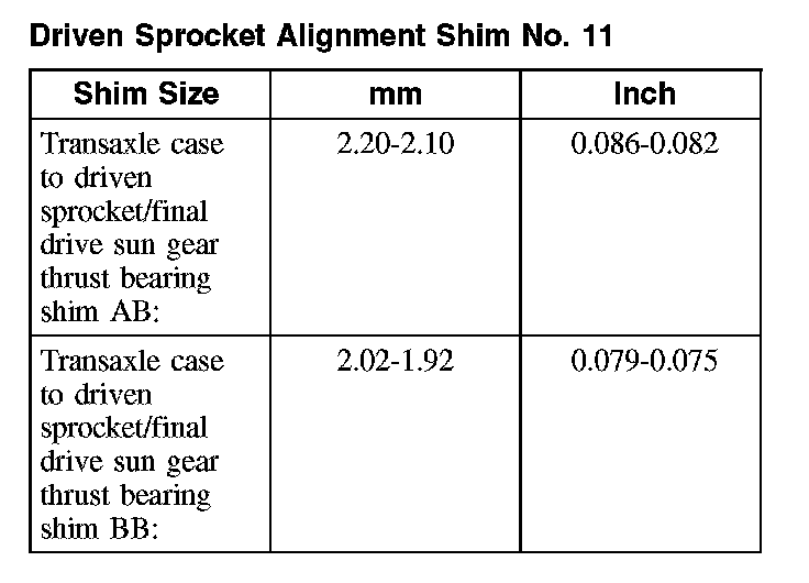 2 Install the selected No. 11 driven sprocket shim.