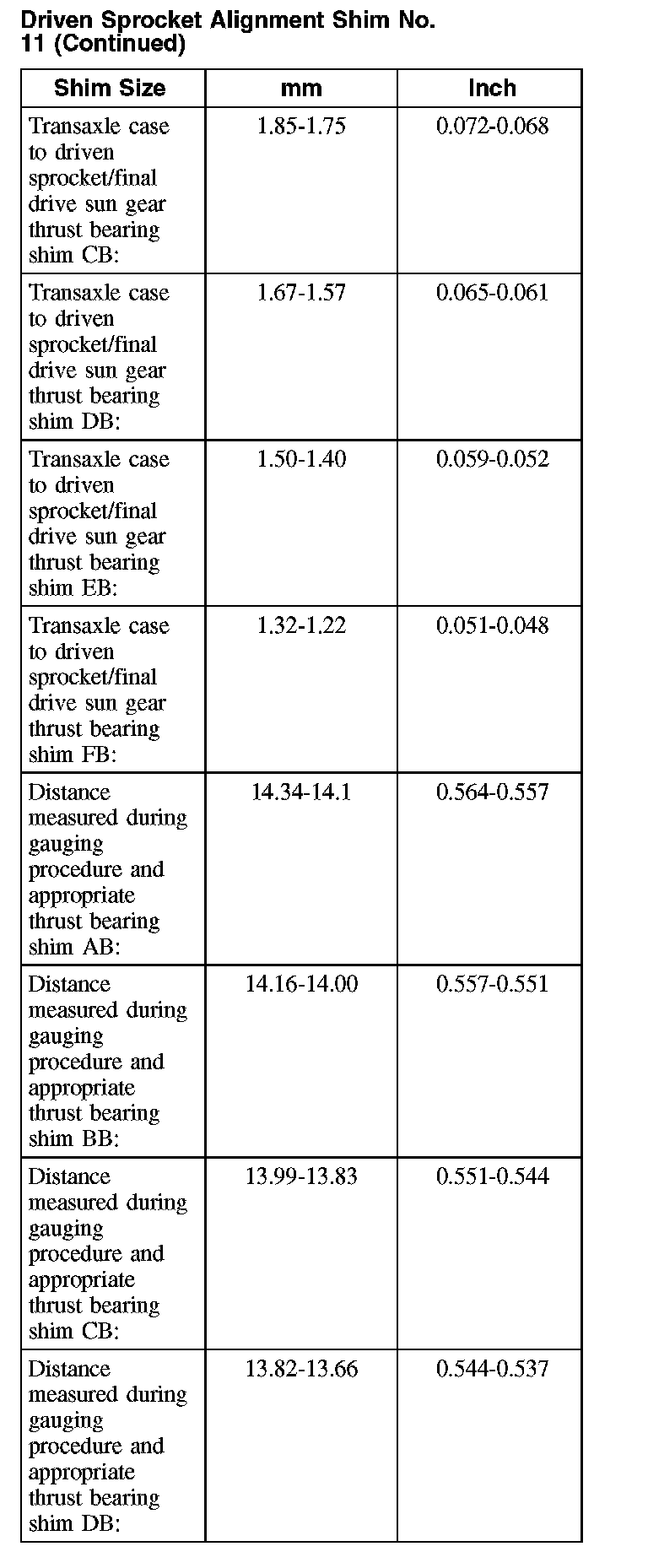 37. Use dimension C to select the correct No. 11 driven sprocket shim.