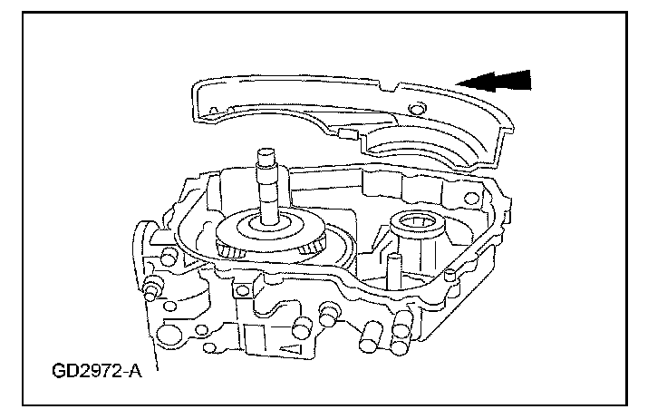 ^ Verify that the driven sprocket assembly and reverse/overdrive ring gear assembly are seated.