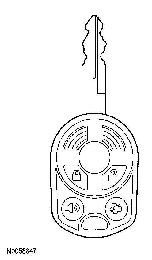 The SJB accepts programming of up to 4 IKTs. In addition to the IKTs, 4 standard keyfobs can also be programmed to the vehicle if requested by the customer. For information on programming the IKTs refer to Antitheft and Alarm Systems. For information on programming the keyfobs, refer to Remote Keyless Entry Transmitter Programming. Transmitter