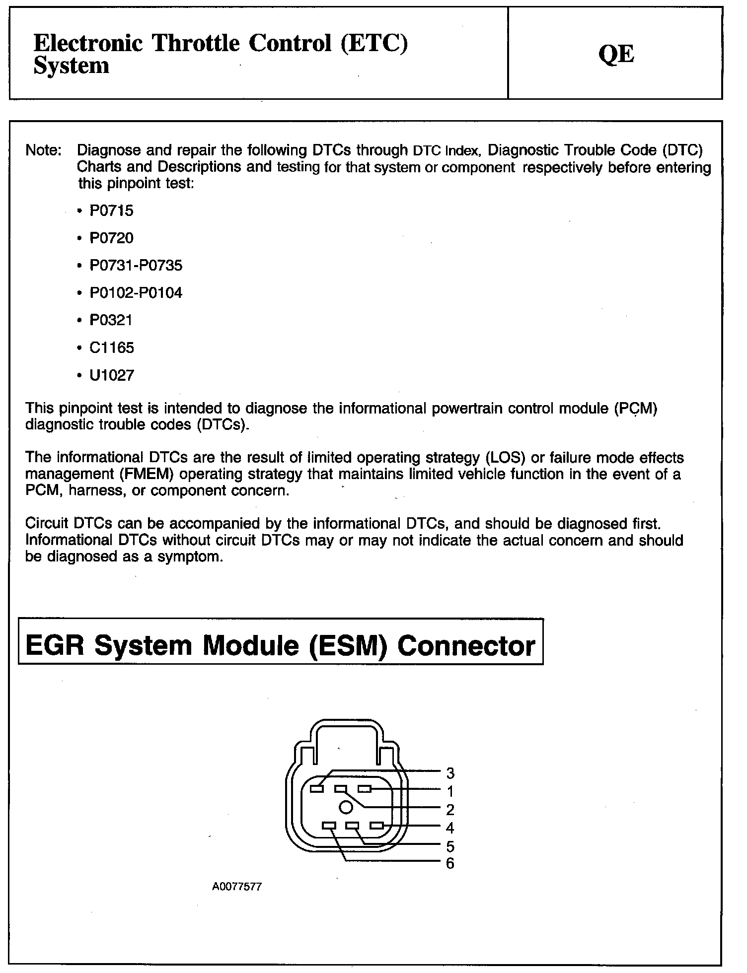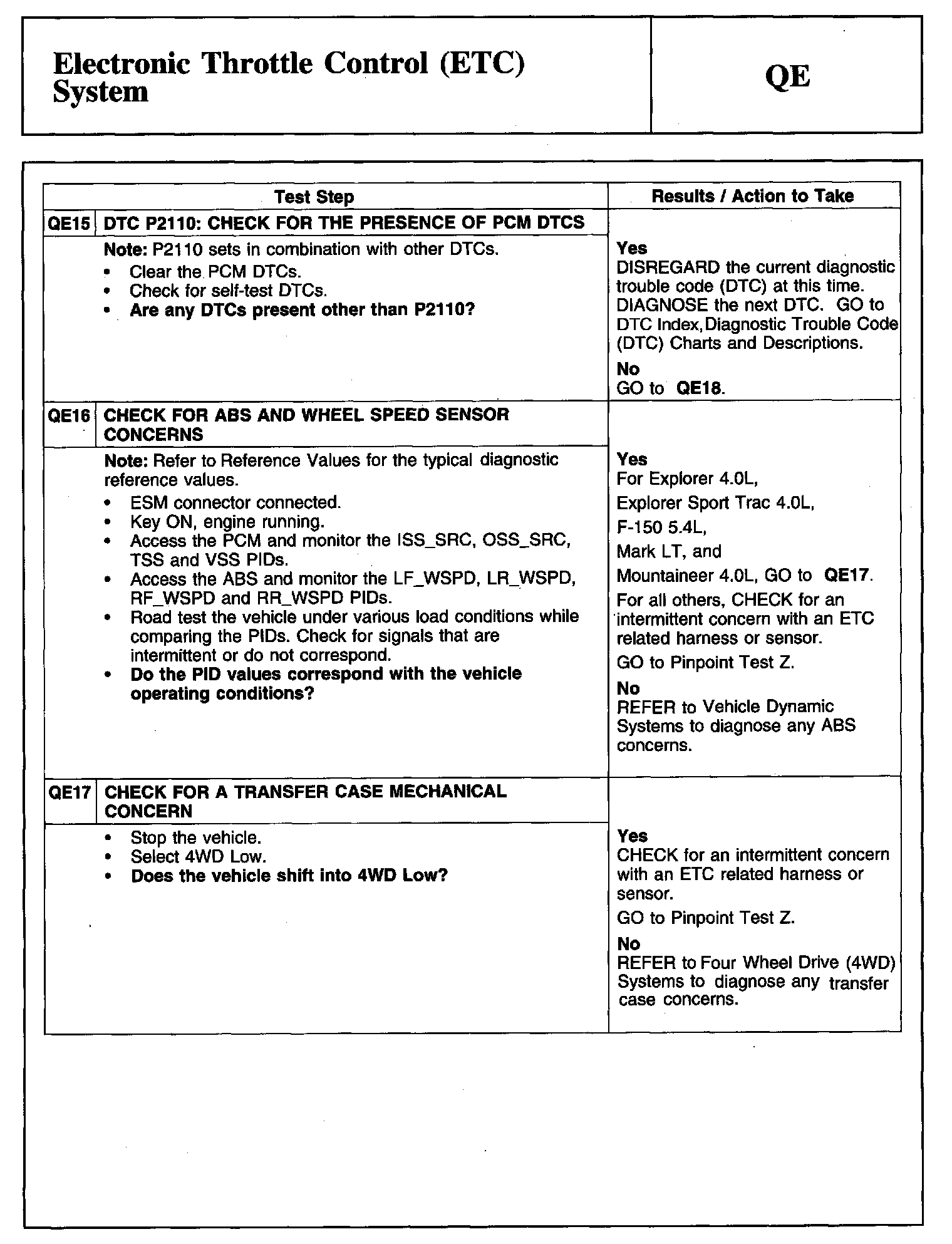 PINPOINT TEST QE: ELECTRONIC THROTTLE CONTROL (ETC) SYSTEM