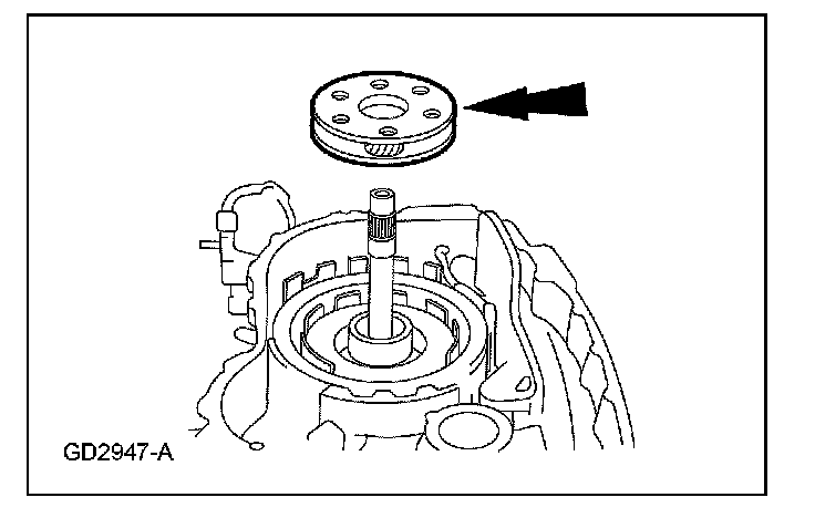 24. Install the reverse/overdrive carrier assembly with the captured No. 8 thrust bearing.