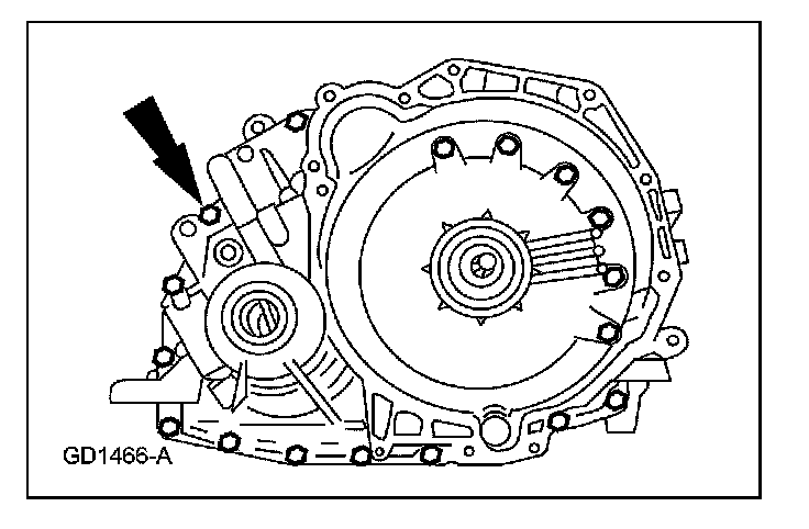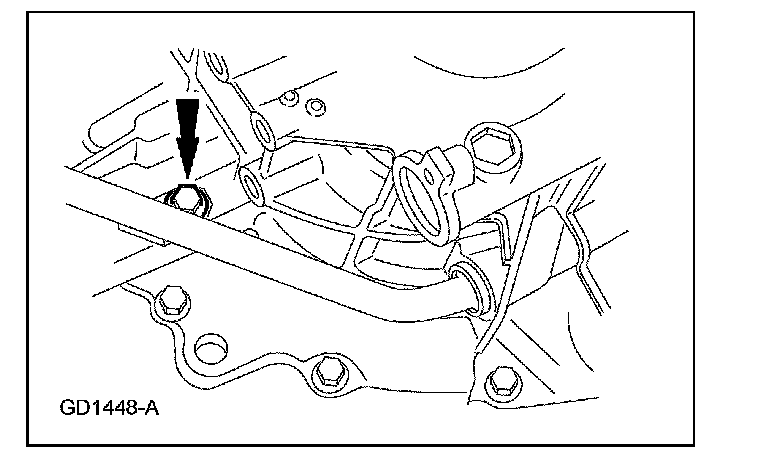 14. Remove the transaxle fluid filler tube bolt.