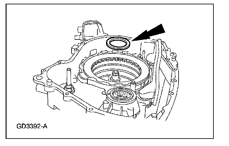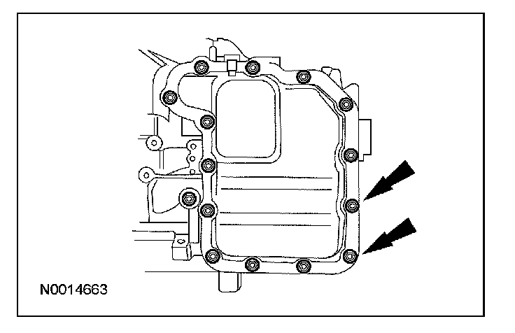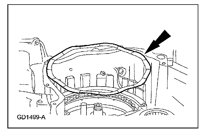 ^ Remove and discard the transaxle split flange gasket.