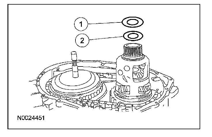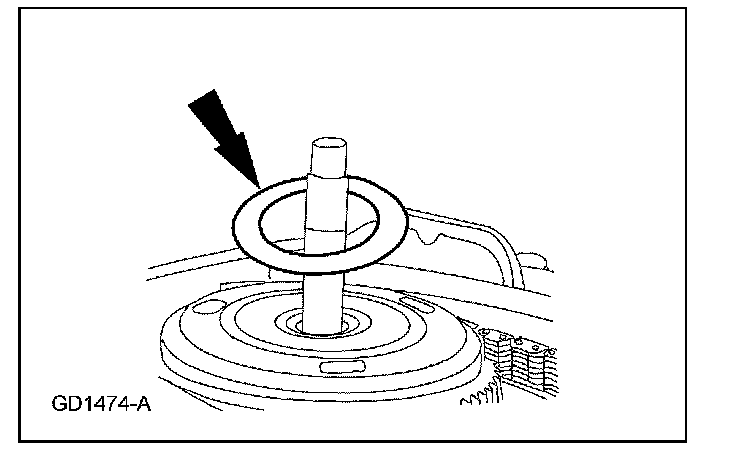 Remove the No. 10 driven sprocket thrust washer from the reverse/overdrive ring gear assembly.