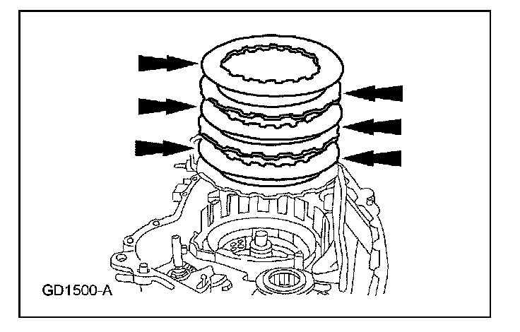 ^ Inspect the friction plates for partially stripped, broken or bent spline teeth, burnt, worn or flaked-off friction material and warped or bent friction discs.
