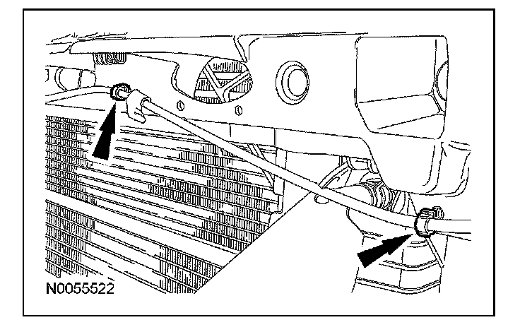 11. Connect the 2 power steering fluid cooler hoses to the condenser core.