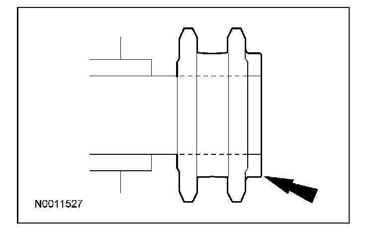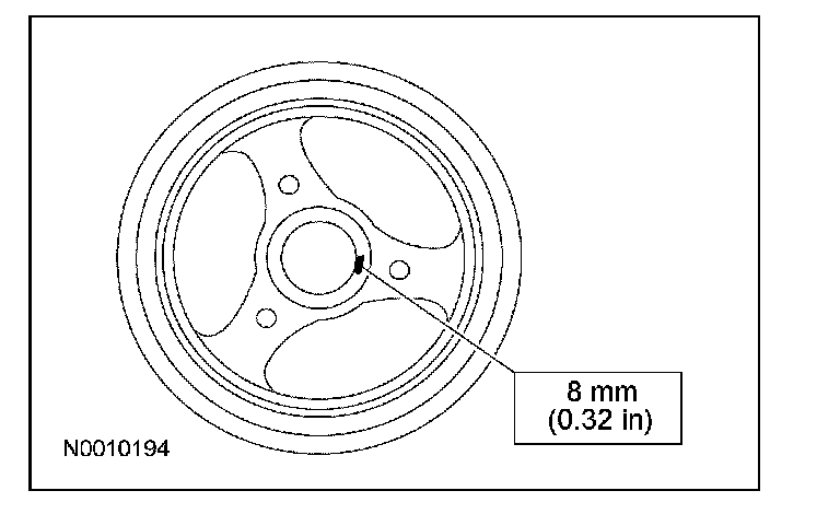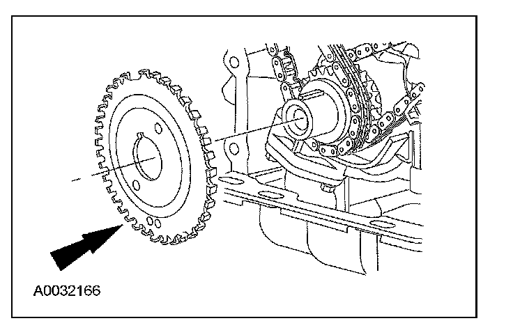 45. NOTE: The camshaft phaser and sprocket will be stamped with one of the illustrated timing marks for the RH camshaft.